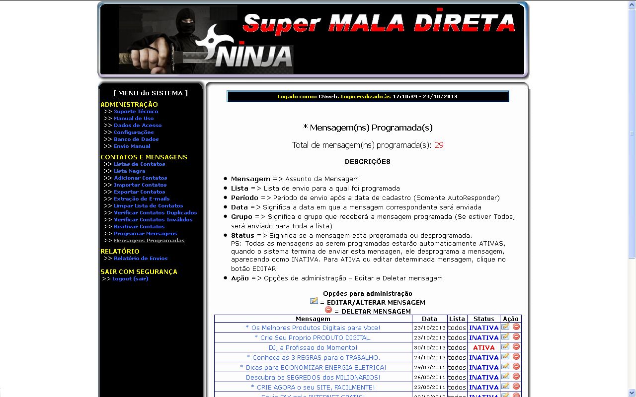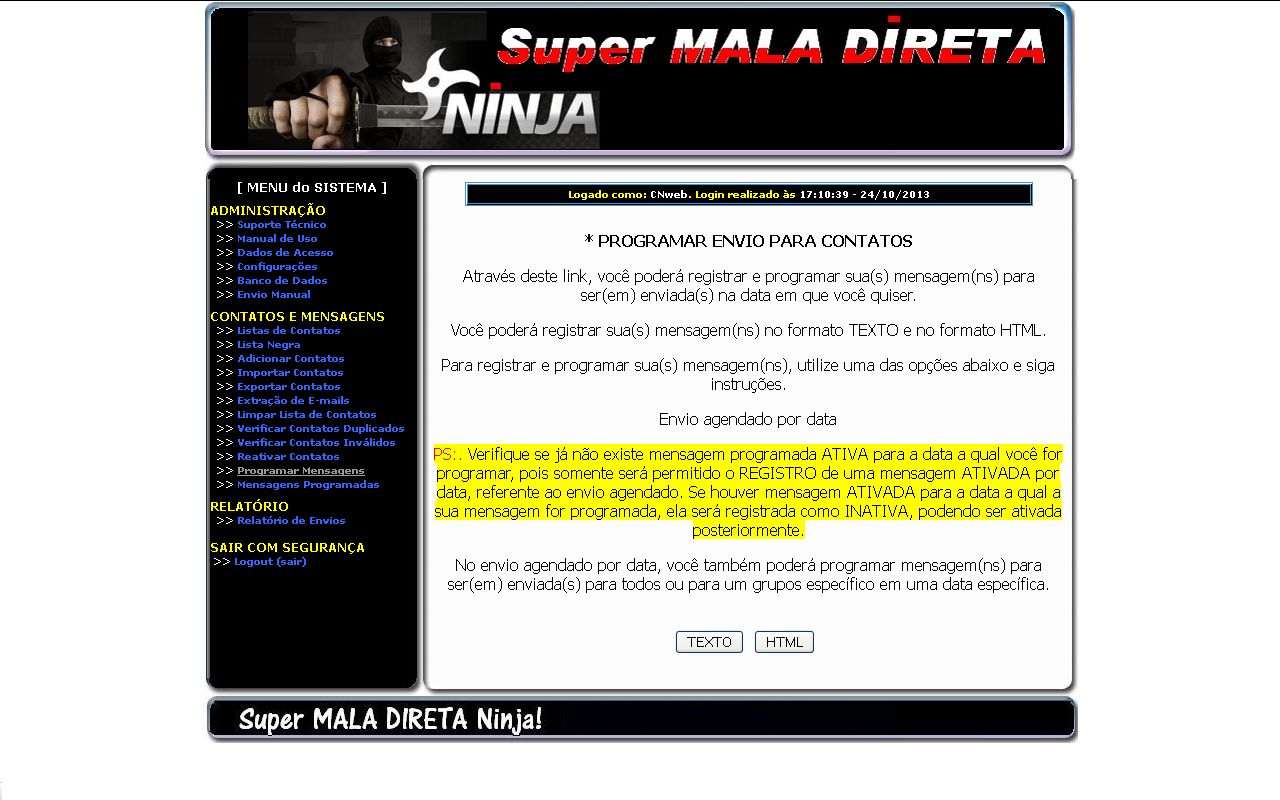 Super MALA DIRETA Ninja!, você poderá programar mensagens para envio automático